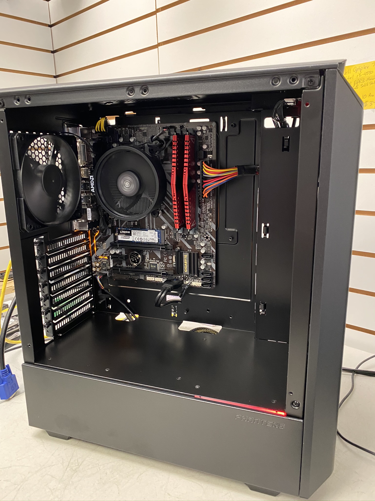 For the budget customer we are building custom AMD Ryzen 3 3200G Desktops featuring 16GB DDR4 ram, 250GB NVMe, and the ability to upgrade in the future. These are starter desktop PC’s have integrated Radeon Vega 8 graphics that will run some games on basic settings. Easily add a video card when the time is right. The AMD B450 chipset, 500W power supply, and Phanteks P300 leave the door open for the future.