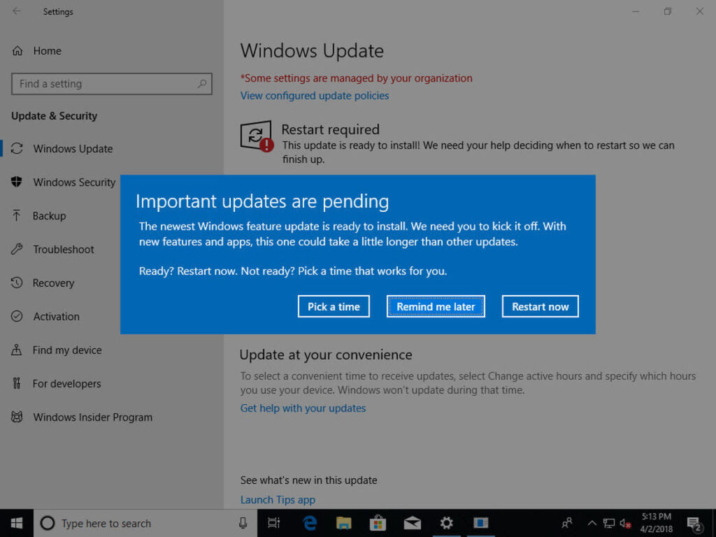 So a lot of customers keep coming by with crashed Windows 10 due to they think the upgrade to 1803 got stuck. Most of the time its just moving your files and you need to wait it out. Of course if its been like 10 hours something went wrong. It is a good update to just be patient and then enjoy your upgraded OS!