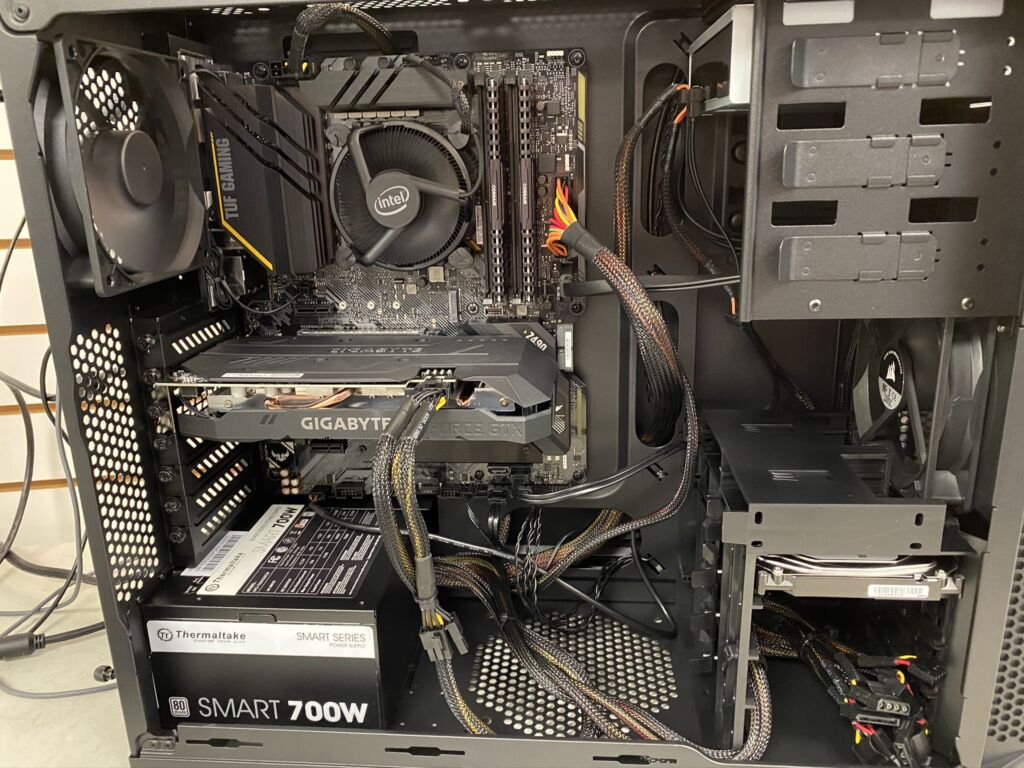 Today we got to build our first 10th Gen Intel system using the i7-10700, ASUS Z490-Plus Wifi Motherboard, Corsair 16GB DDR4 3000mhz, 512GB Intel 660p NVMe, and a Geforce GTX 1660. This system scored in the 99th percentile so it’s wicked fast! Sorry AMD, we will stick with Intel for now. Idle temp on stock fan 38 degrees. Please ignore the cabling job, this is an old case with horrible cable management.
